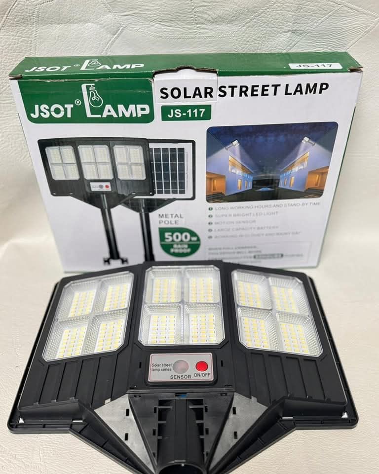 Solar Streetlight 500W 3 Sided Lamp With motion sensor and remote ,Comes With Metallic Pole and screws
